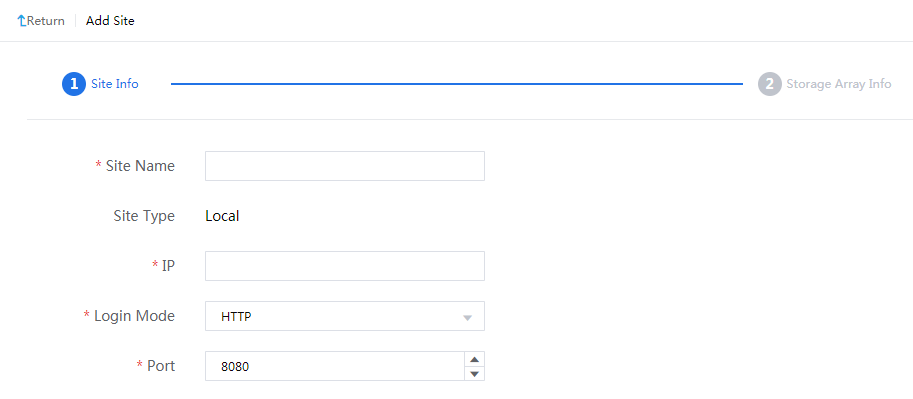 Click the local site name to view its information and storage array manager list.