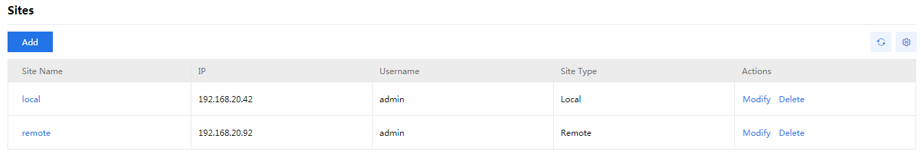 Enter the IP address of the local CVM system. By default, a site added first is a local site (protected site). The sites added subsequently are all remote sites.