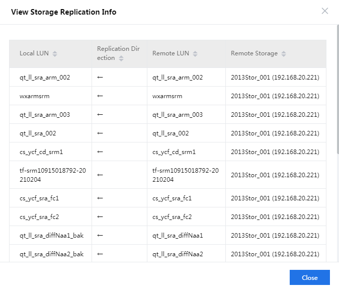 Click More for the storage array manager and then select View Storage Replication Info for the storage array manager to verify replication relationships.
